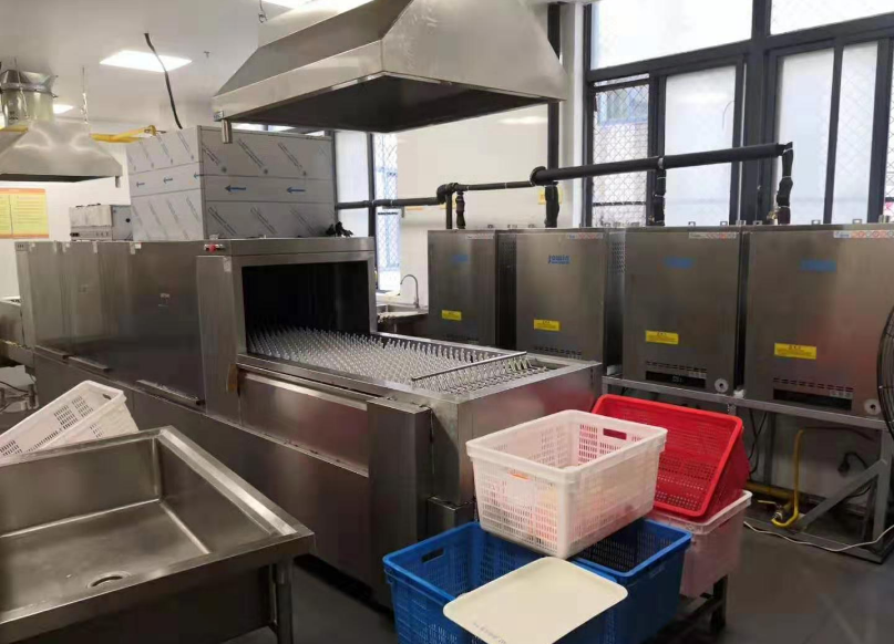 洗碗機采用高溫蒸汽為餐具清洗、高溫沖洗、烘干一體化處理的,機器的整個洗碗過程結束后餐具無須再進行另外消毒。