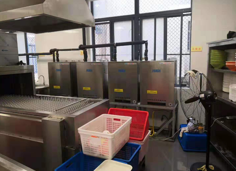 ,采用卓益節能蒸汽機為洗碗機提供熱源,