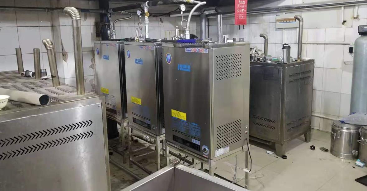 齊魯工業(yè)大學(xué)食堂采用卓益節(jié)能蒸汽機為學(xué)校蒸柜和夾層鍋提供高溫蒸汽,蒸汽溫度高達(dá)120℃,