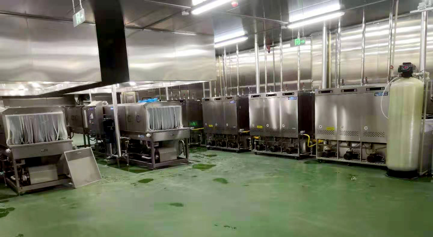 上海廚業食品有限公司采用卓益4臺三膽蒸汽發生器為3臺洗框機和1臺真空冷卻機供高溫蒸汽。