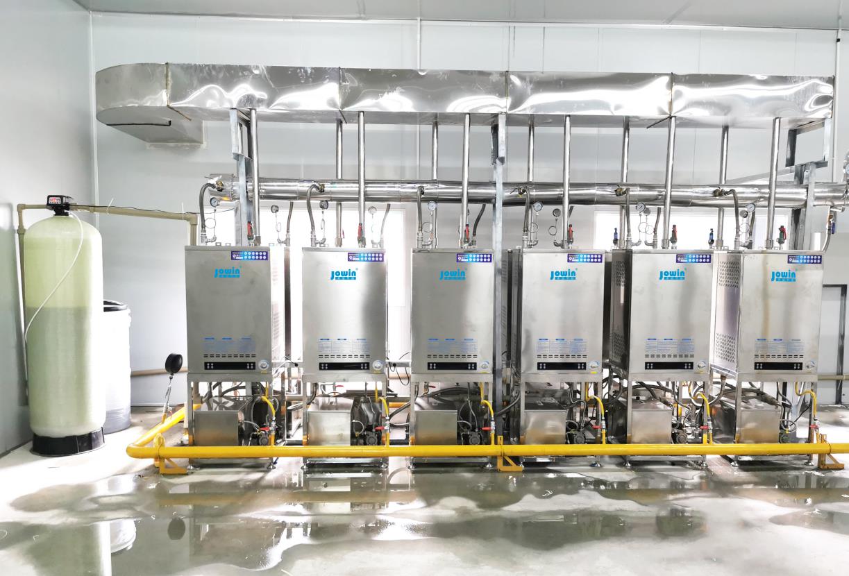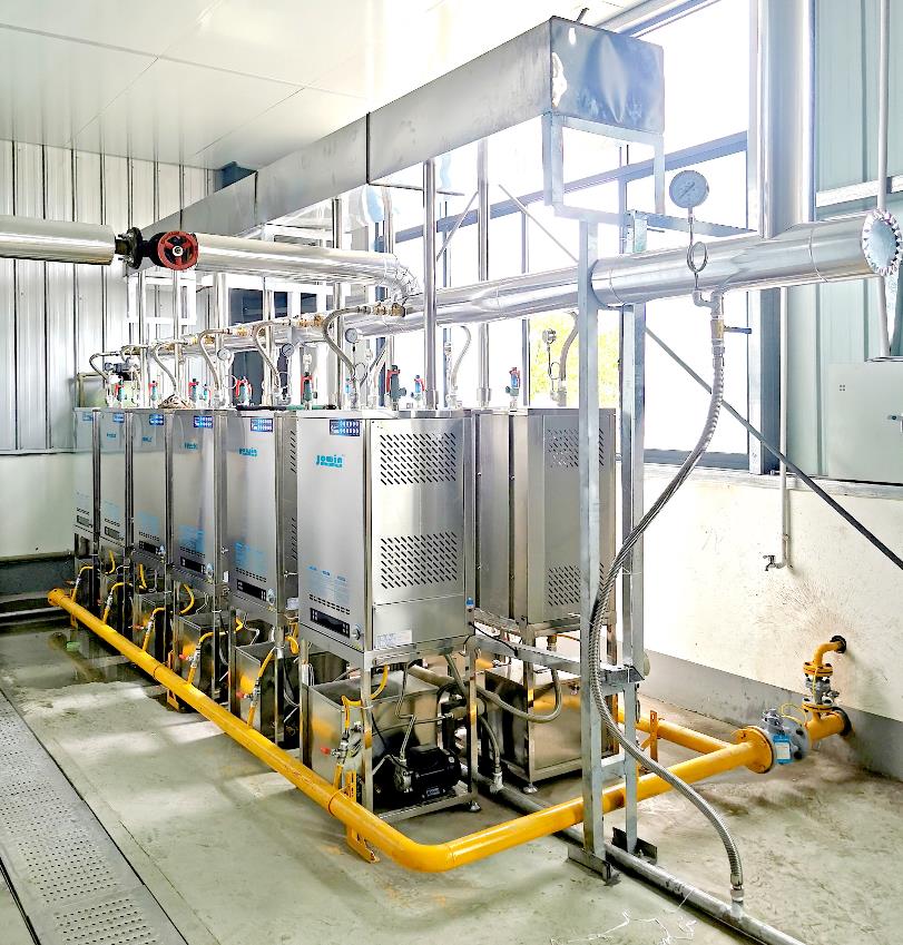 卓益商用模塊式蒸汽發生器,主要用于傳統蒸柜的節能改造,產品采用模塊化結構,大大提高了設備的可靠性。整機由燃氣電磁閥(可人工調節控制火力大小)、燃燒器、電子點火器、水泵、316不銹鋼管換熱器、水位控制箱、強排抽風機、智能控制總成等要件構成。運用最新燃燒換熱技術設計制造,一鍵操作,智能控制,可使用液化石油氣、天然氣、人工煤氣等氣體燃料,快速地的產生大量連續蒸汽。設備自動運行,可單機或多機組合使用,是替代傳統鍋爐和傳統加熱設備或節能改造的最佳產品。