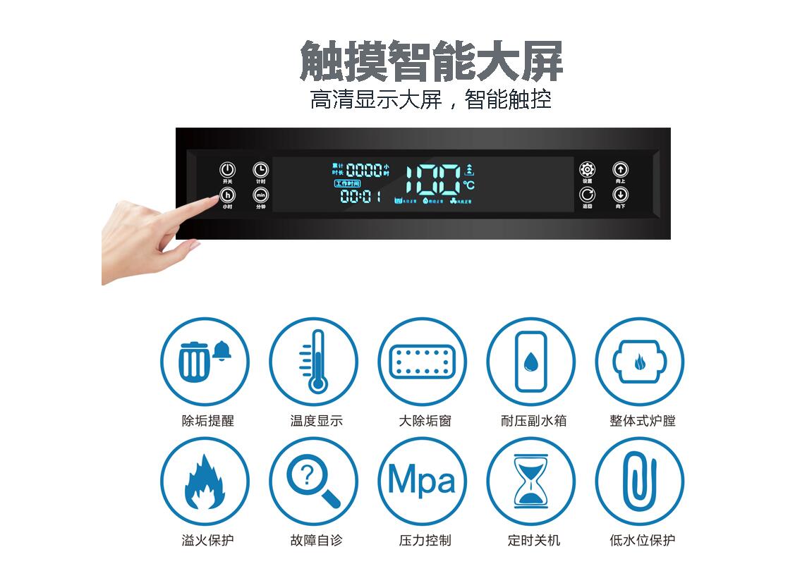 1、 操作方便:一鍵式開關(guān),電子自動點火,隨用隨開,自動進水,使用方便;