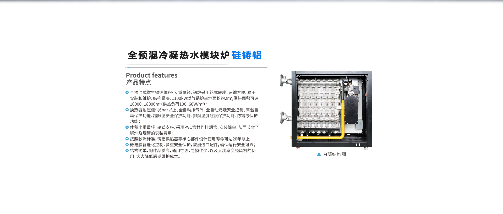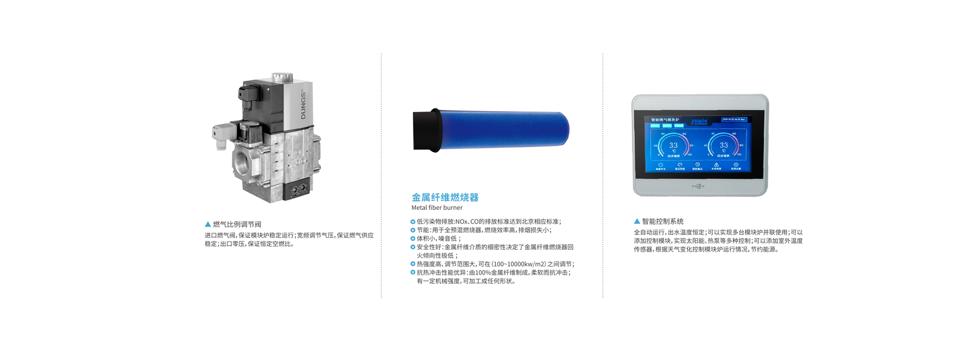 全預混式模塊爐體積小,重量輕產品采用輪式底座,運輸方便,易于安裝,1100kw模塊爐占地面積約2m2,供熱面積可達1000~18000m2